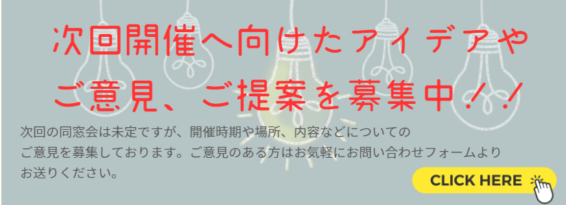 | 出欠申し込み | 出欠連絡は【出席・欠席申し込みフォーム】よりご連絡をお願いします。 |